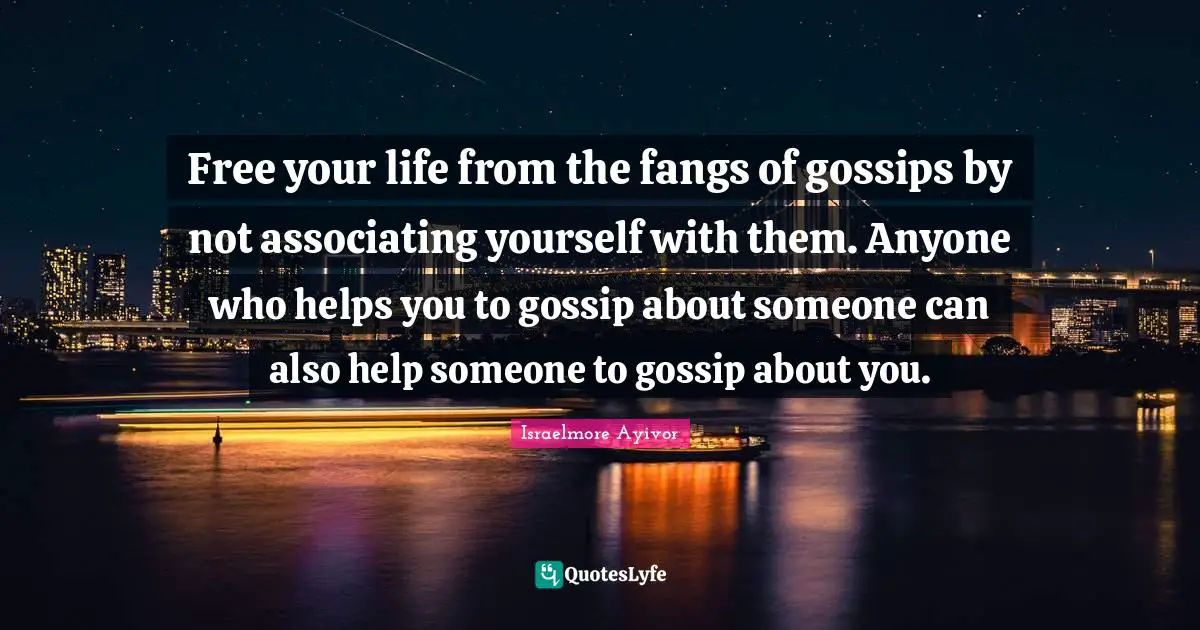 Free Your Life From The Fangs Of Gossips By Not Associating Yourself W Quote By Israelmore Ayivor Quoteslyfe