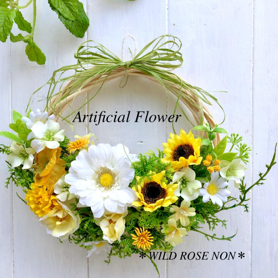 ひまわり 夏リース ハーフムーンリース 玄関ドアーリース 夏ガーデン風リース アーティフィシャルフラワー 上質造花 Art0010 Art0010 Wild Rose Non Yahoo 店 通販 Yahoo ショッピング
